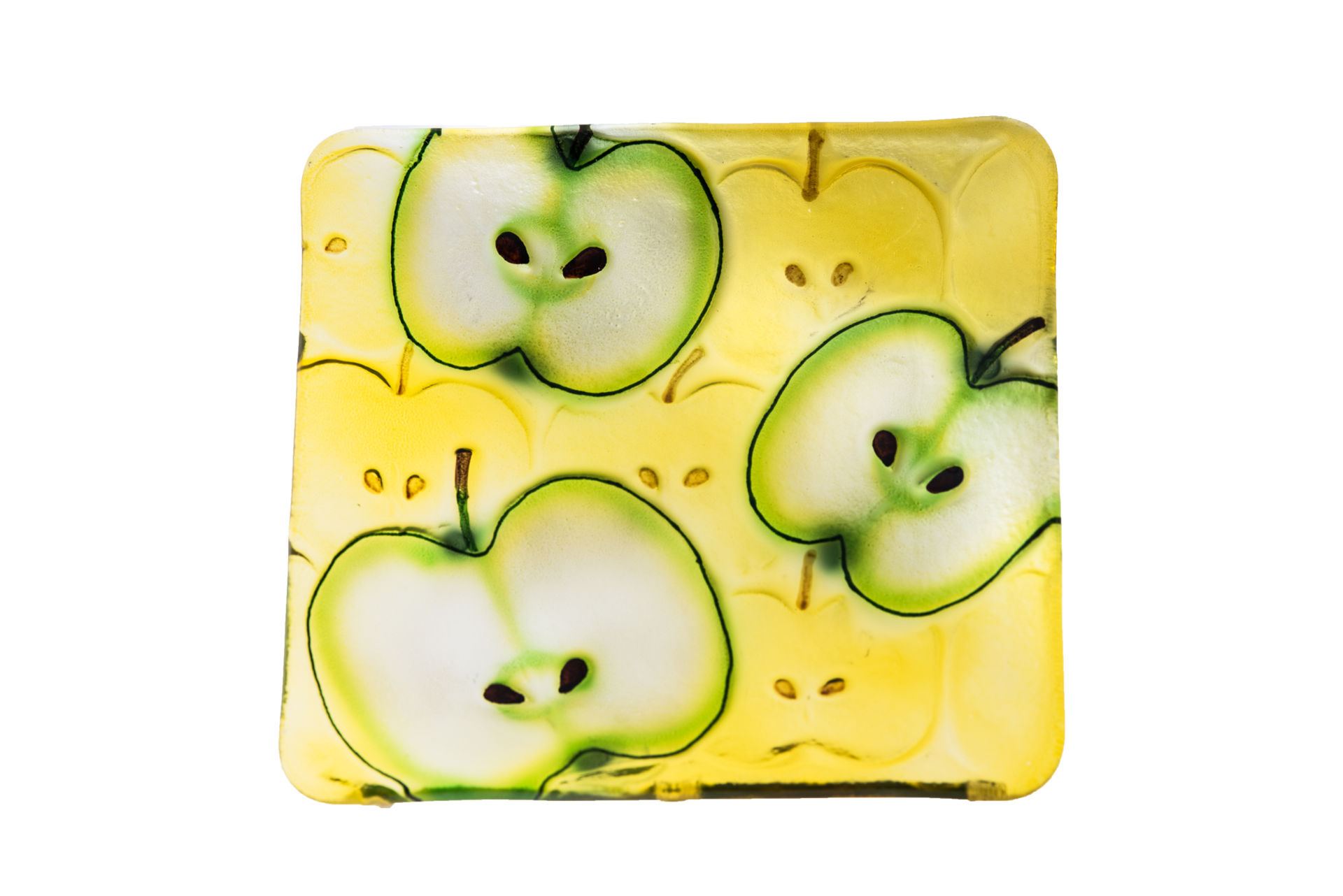 Plate Square with Apples. Made of Glass. 8. x 8 inches. Min qty 4.