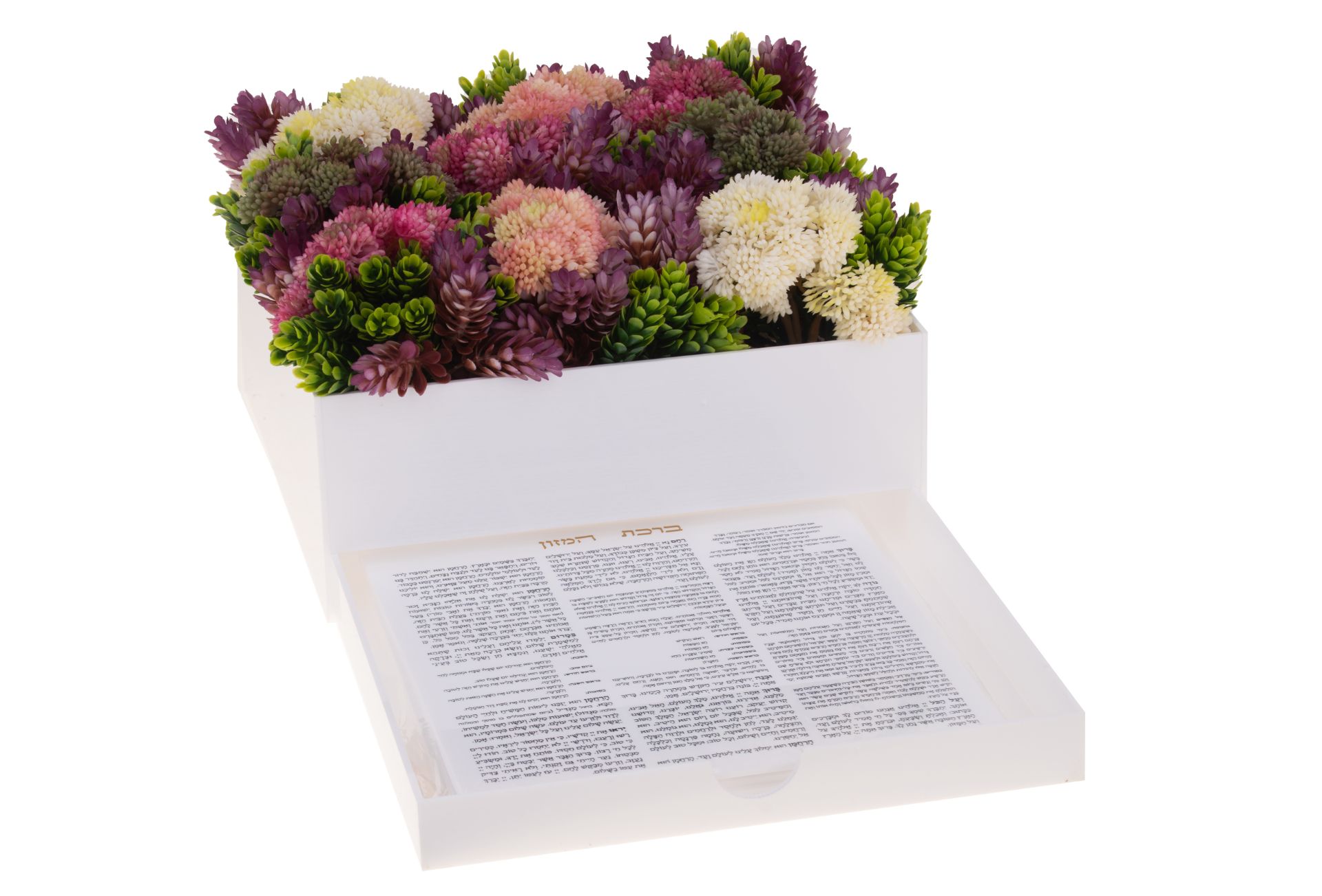 Bencher Holder on white lucite with flowers 6 benchers 12x12x9 inches